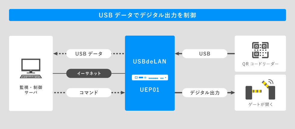 「USBdeLAN(UEP01-HID)」は、USB(HID)通信できる機器をイーサネットに接続する通信アダプタです。